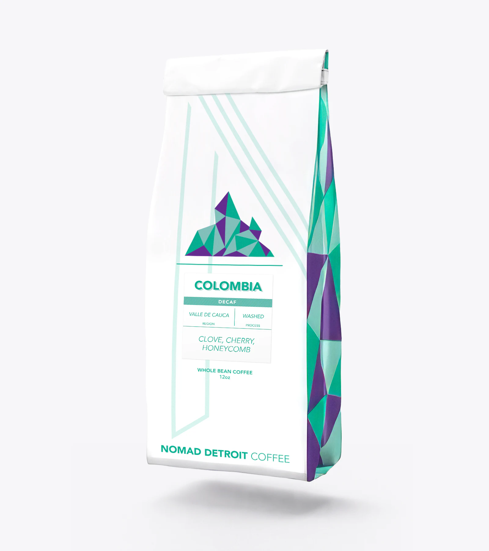 Colombian decaf from Valle de Cauca, decaffeinated using the sugarcane EA (ethyl acetate) process — a gentle, naturally derived method that preserves the bean's full flavor. Warming clove spice, sweet cherry notes, and rich honeycomb sweetness. All the exceptional flavor without the caffeine.